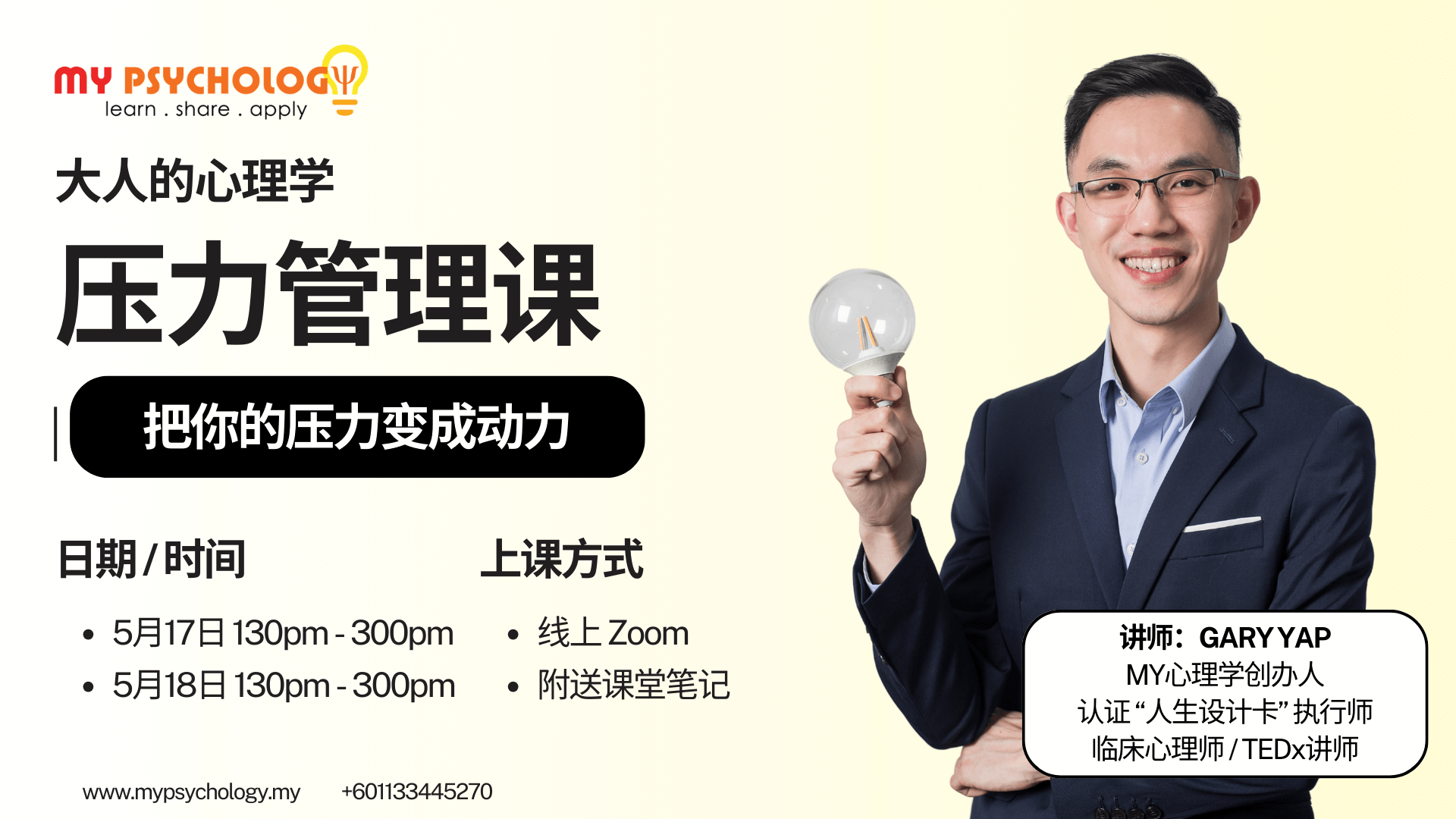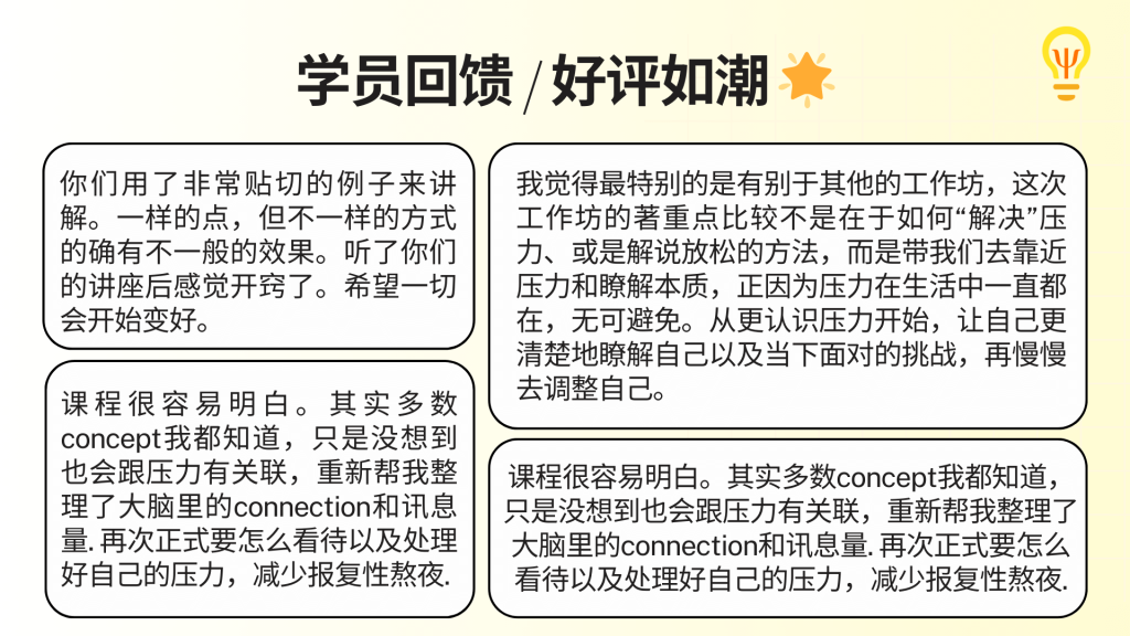 不要错过我们的心理师 Gary的【压力管理课】,点击链接开始报名吧