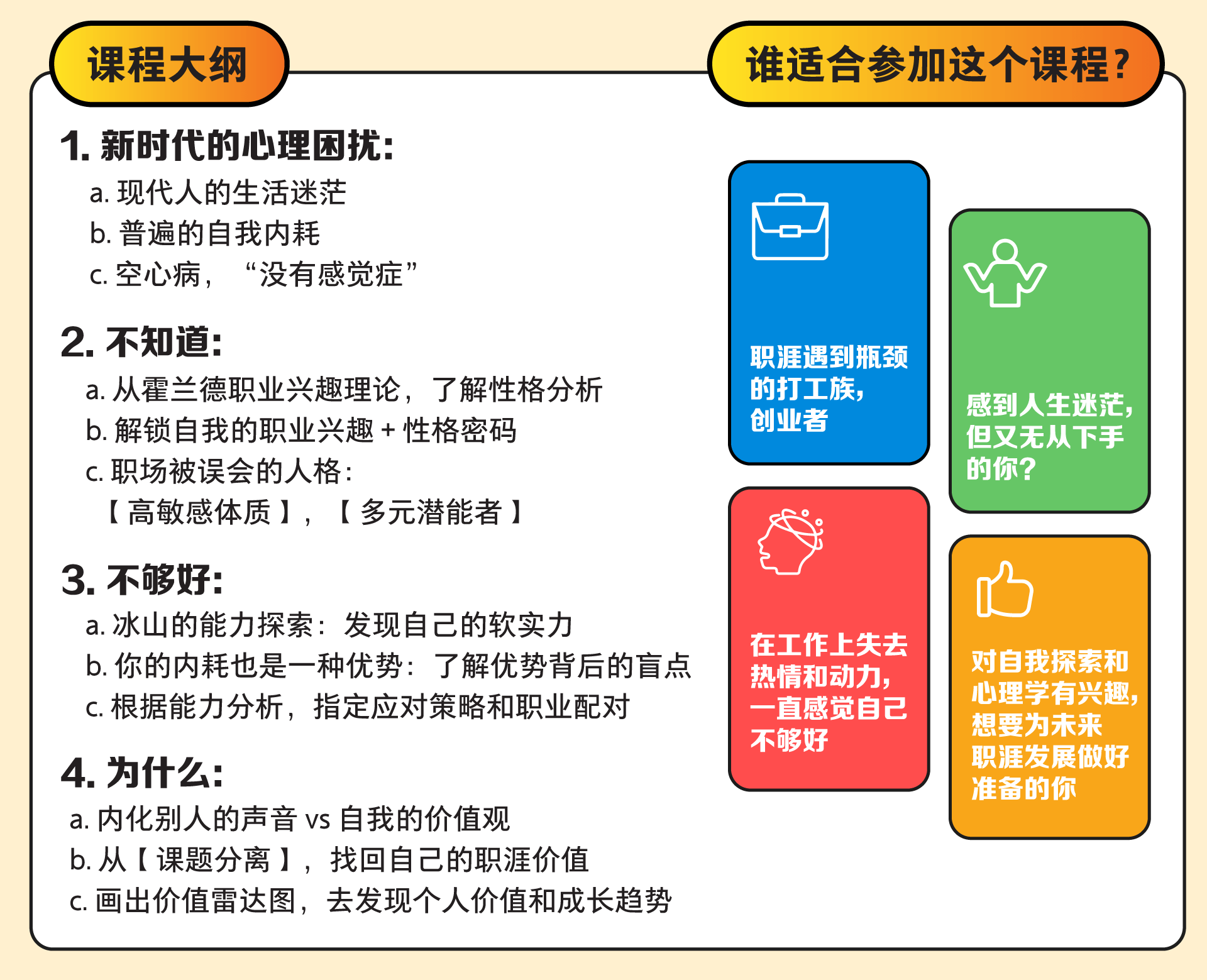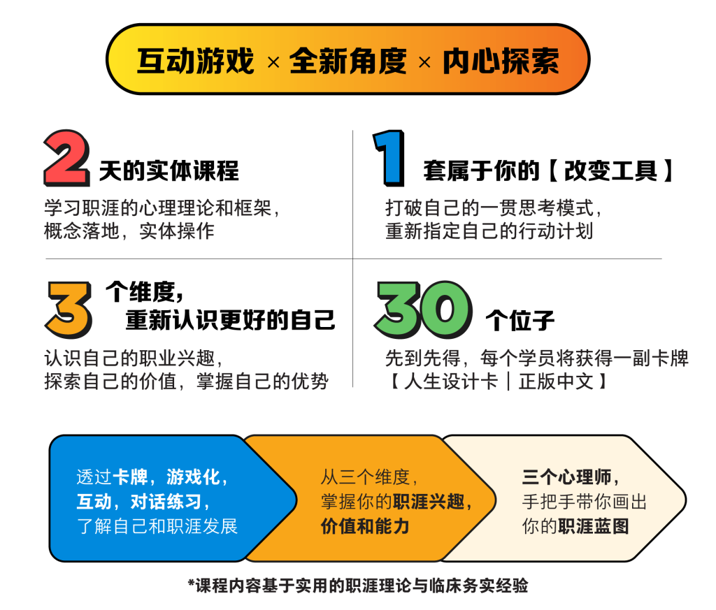 MY心理学线下开课啦!如果你在职业发展中感到迷茫,不知道自己想要什么,缺乏意义感,觉得自己不够好的话,我们的两天线下心理课程可以带你重新找回自己!